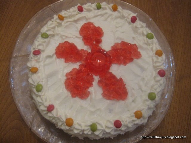 - Depois de retirar do forno, decorei com a cobertura de chocolate e decorei com Multi-Deco;