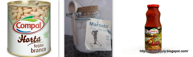 - 1 lata de feijão branco, usei Compal da Horta